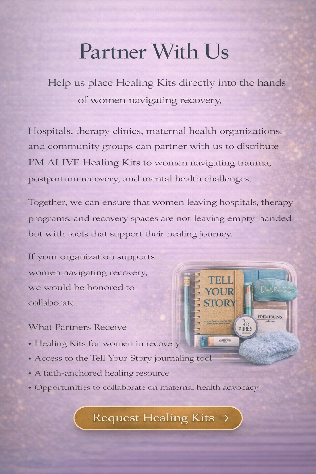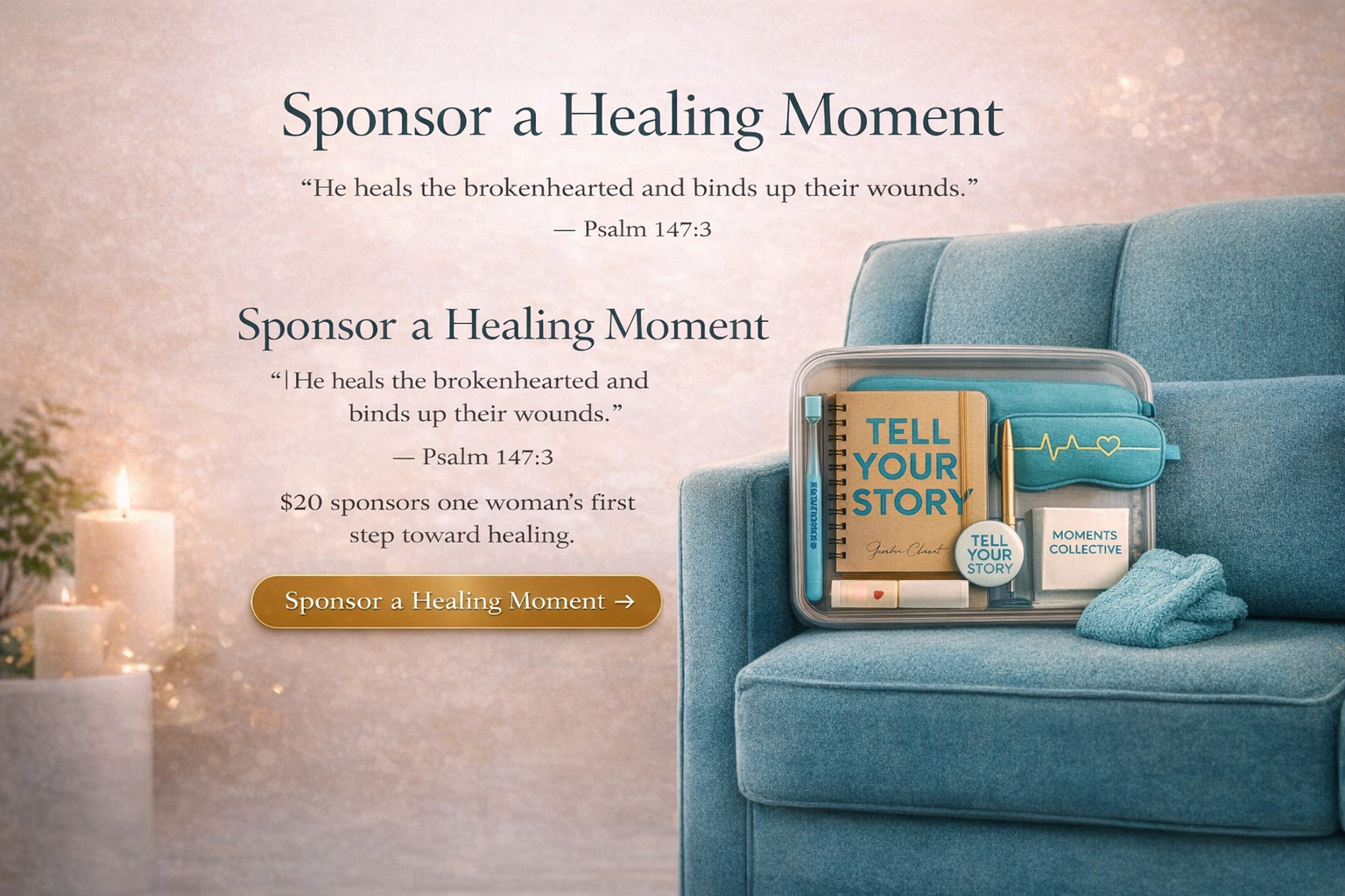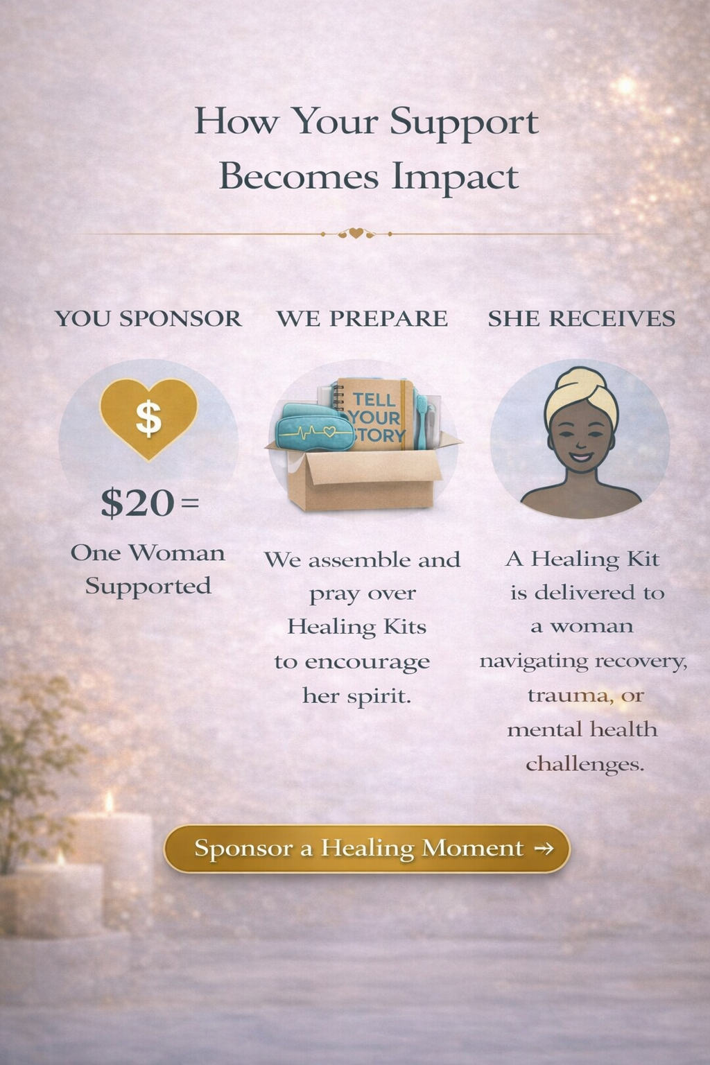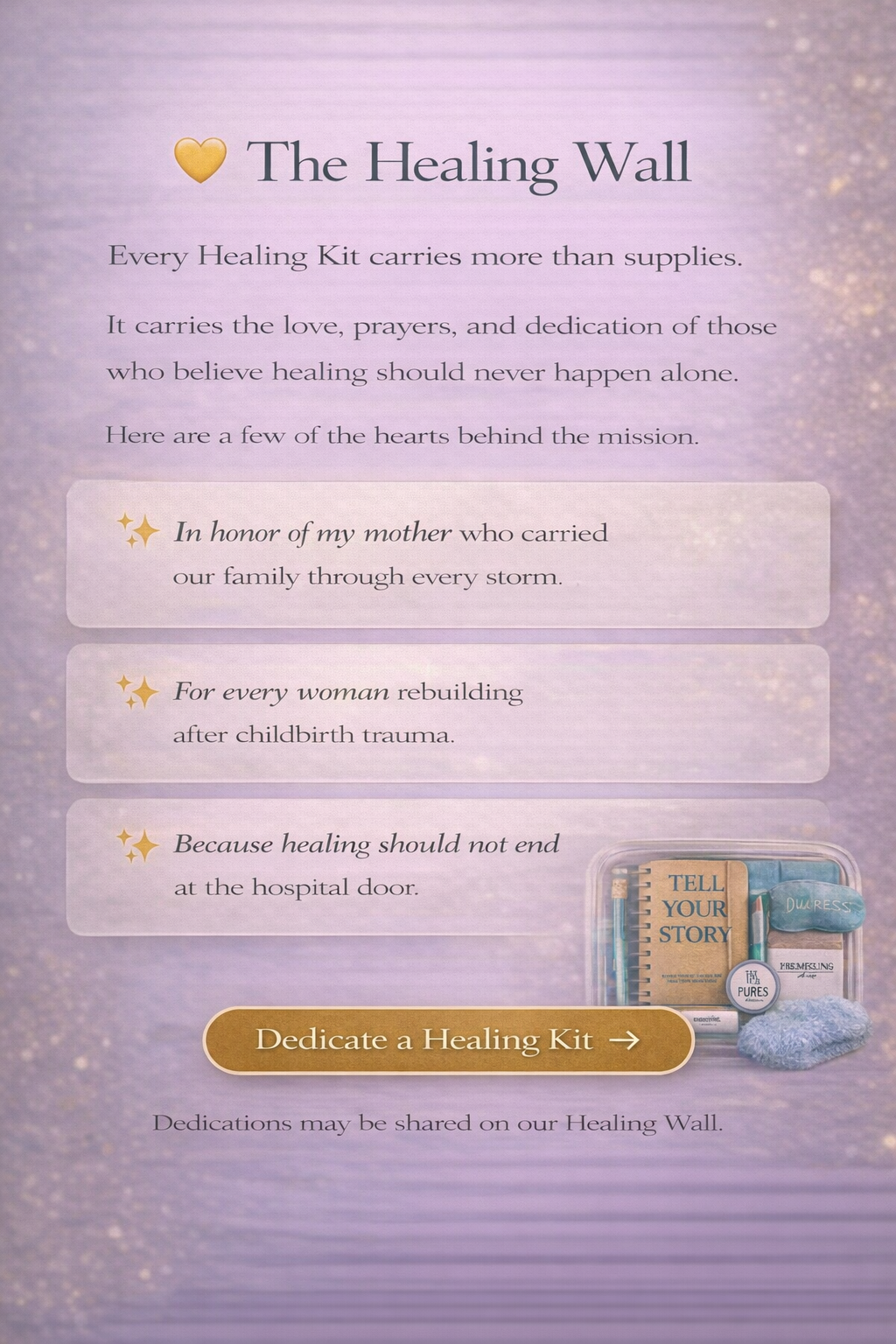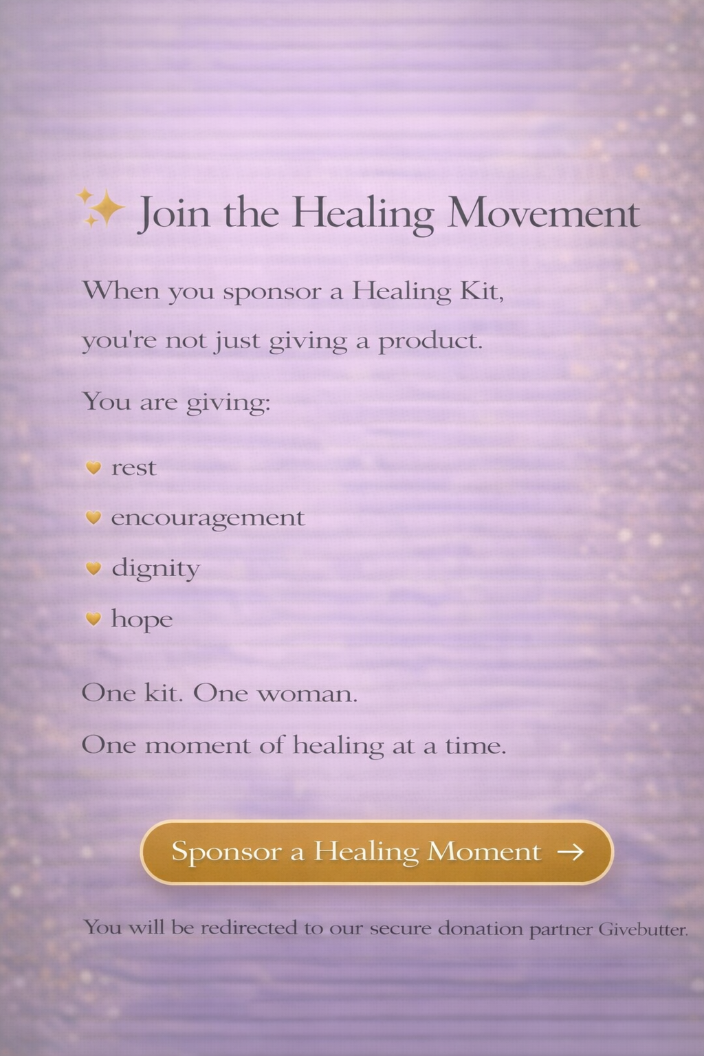 Sponsor a Healing Moment → Sponsor a Healing Moment → Sponsor a Healing Moment → Request Healing Kits → Request Healing Kits